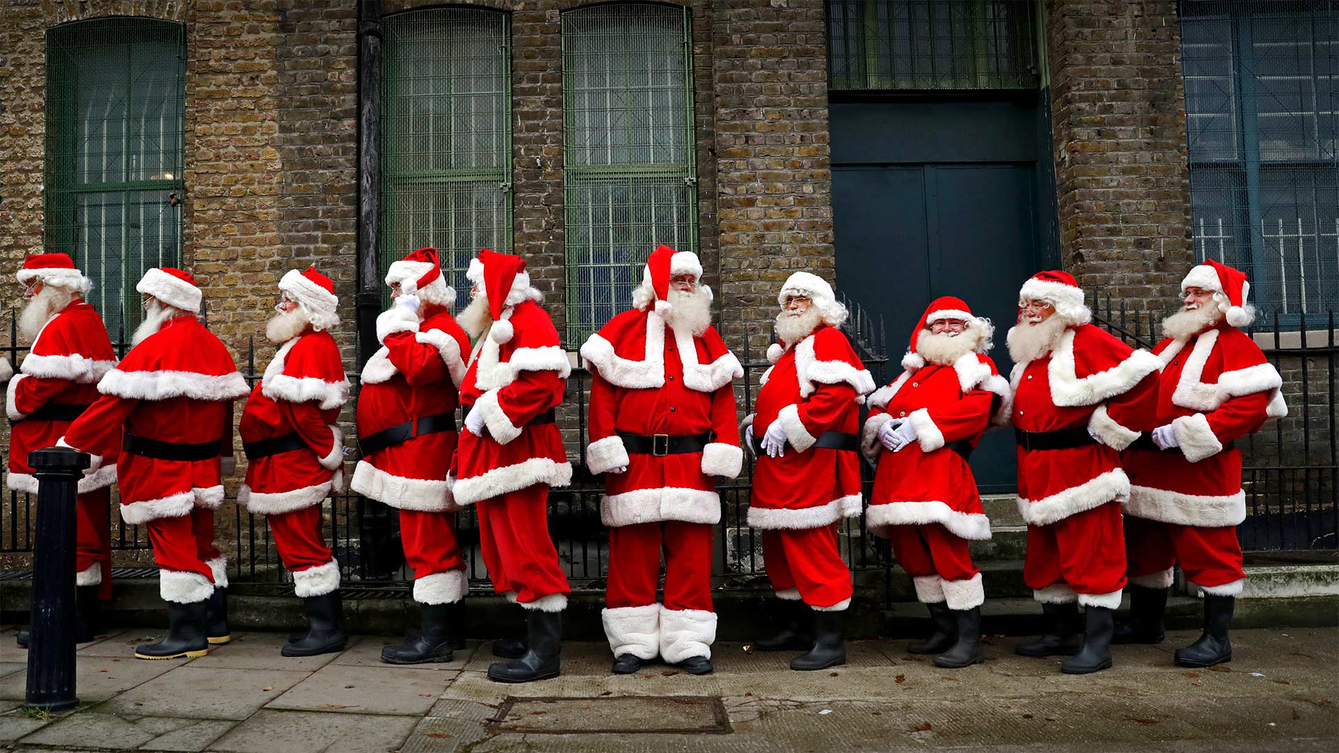 Performers from the Ministry of Fun Santa School in London, 英格兰 (© Matt Dunham/AP Photo)