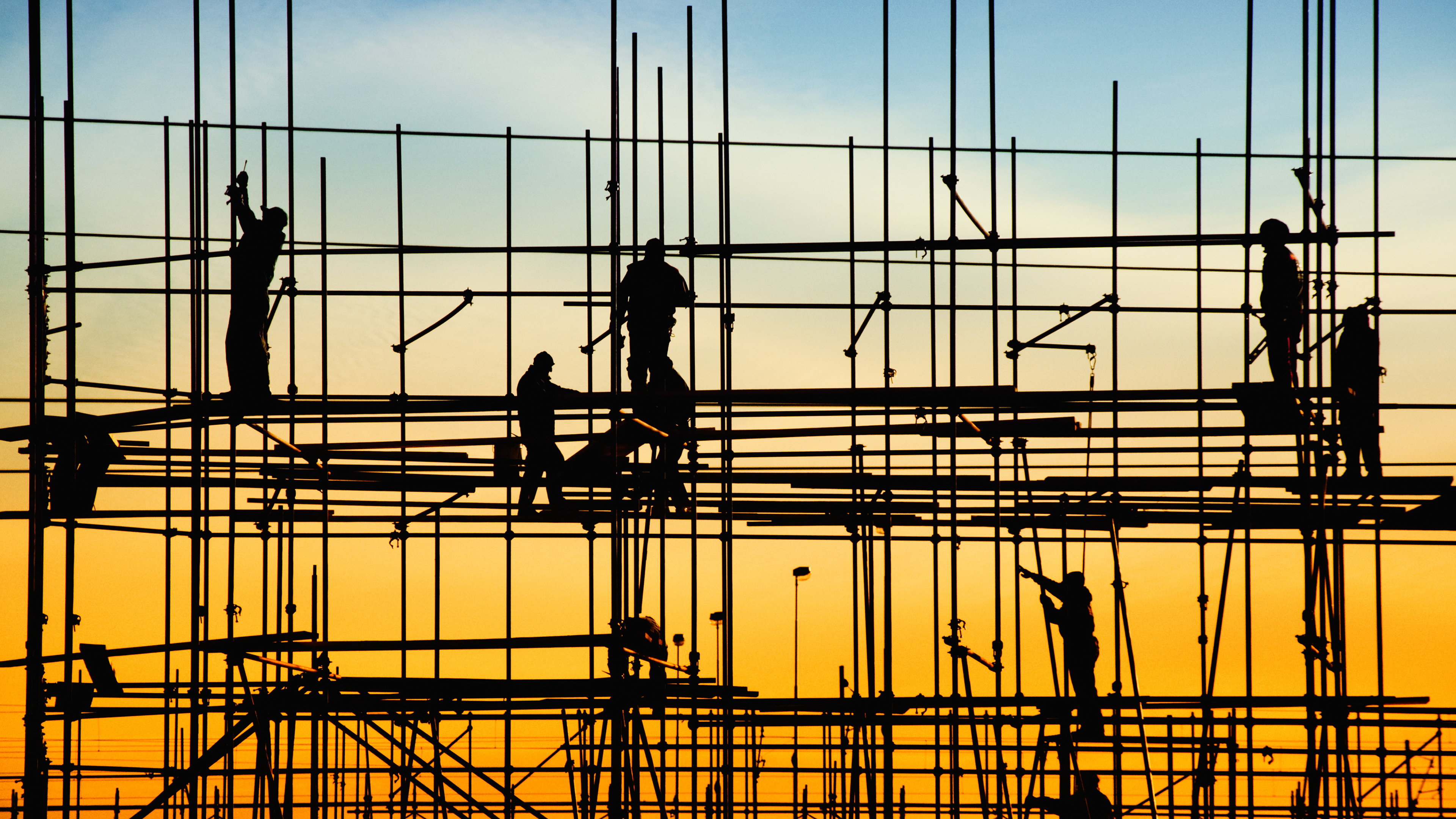 Construction workers on scaffolding (© Bits and Splits/Shutterstock)